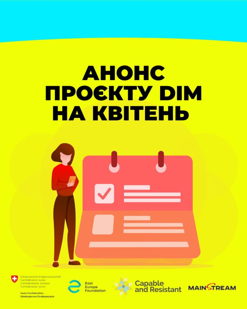 В квітні запрошуємо вас на такі воркшопи та тренінги проєкту «DІМ — Досконалі Ідеї Майбутнього» :
